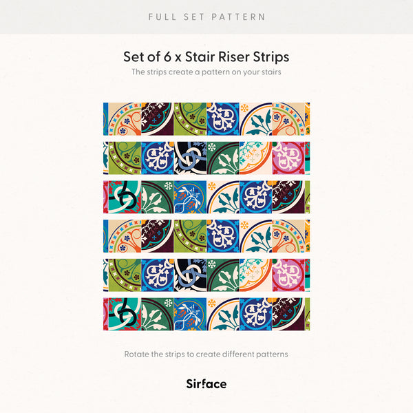 Colourful Moroccan Stair Riser Stickers - PACK OF 6