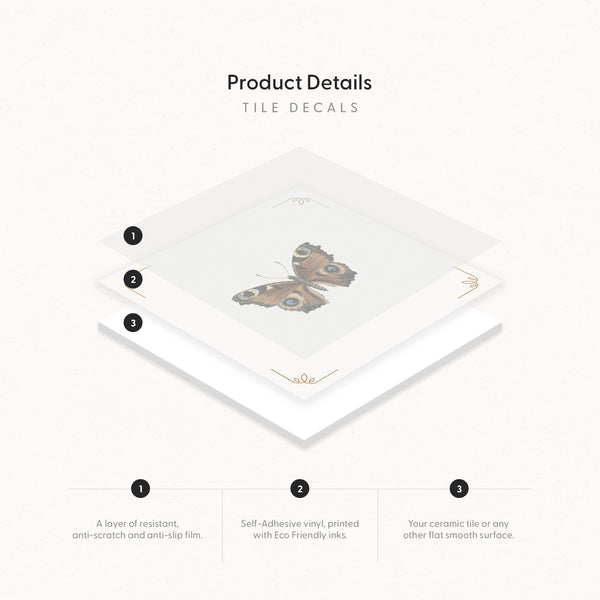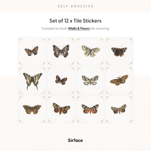 Vintage Butterflies & Moths Tile Decals Set - PACK OF 12