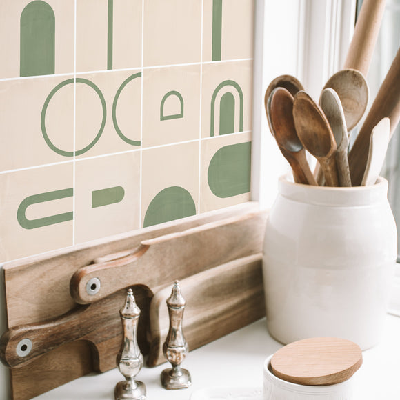 Boho Olive Tile Decals Set - PACK OF 12