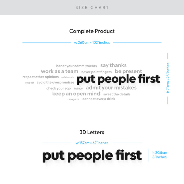 Put People First Word Cloud 3D Office Decor, 3D, Office Wall Art, Typography Decor, Office Motivational Quotes, Office Inspirational Decal