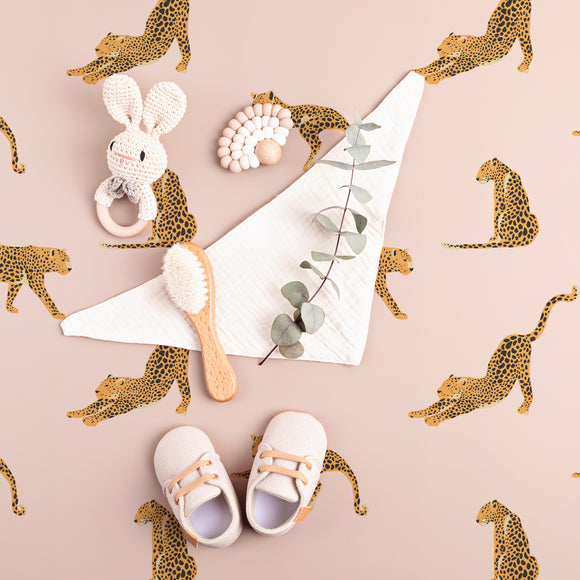 Lazy Leopards Baby Pink Wallpaper