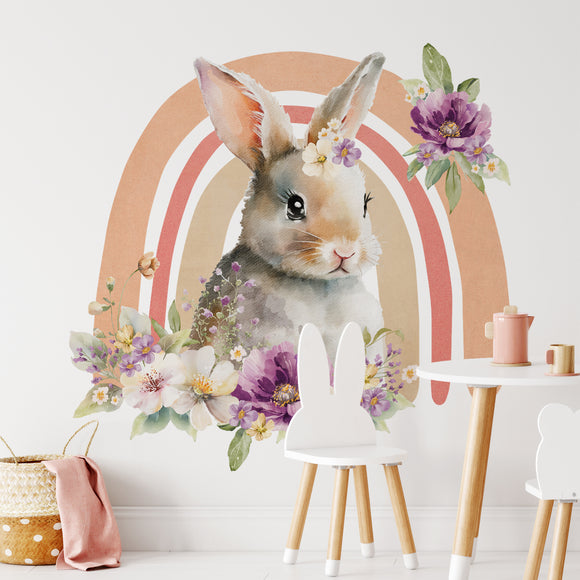 Floral Bunny Rainbow Wall Decal