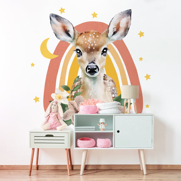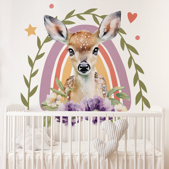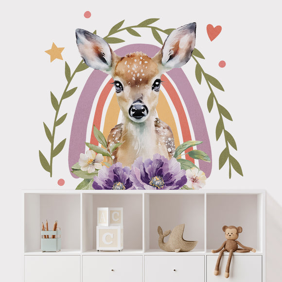 Floral Deer Rainbow Wall Decal