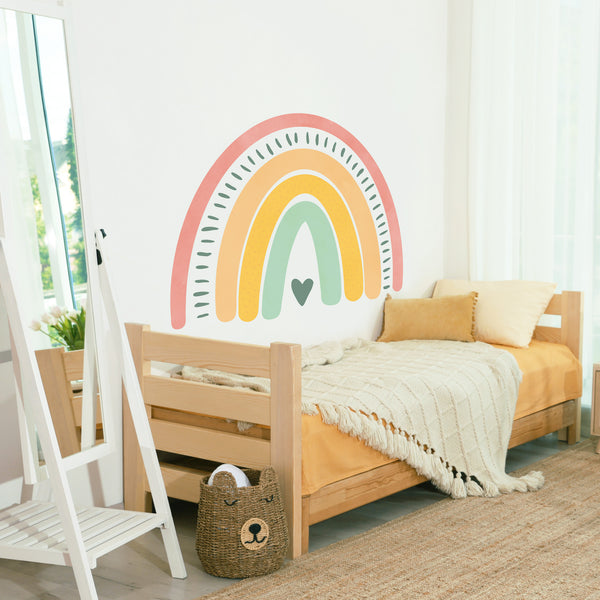 The Dream Rainbow Heart Decal is composed of a rainbow without background and can be placed over a coloured wall, once installed you will have a beautiful and seamless rainbow on your wall.