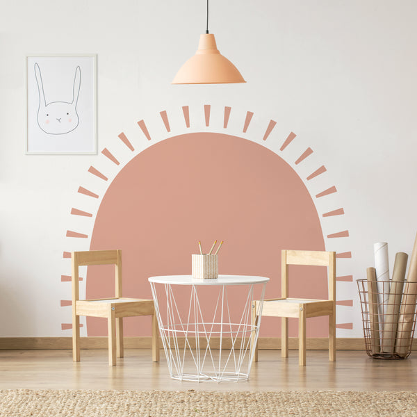 The Half Sun Decal will add a pop of colour to any nursery, bedroom or play area. It is opaque and can be installed over coloured walls.