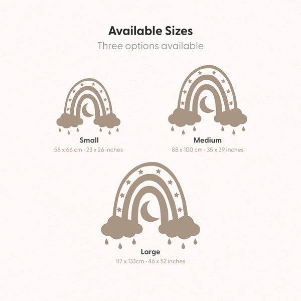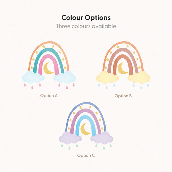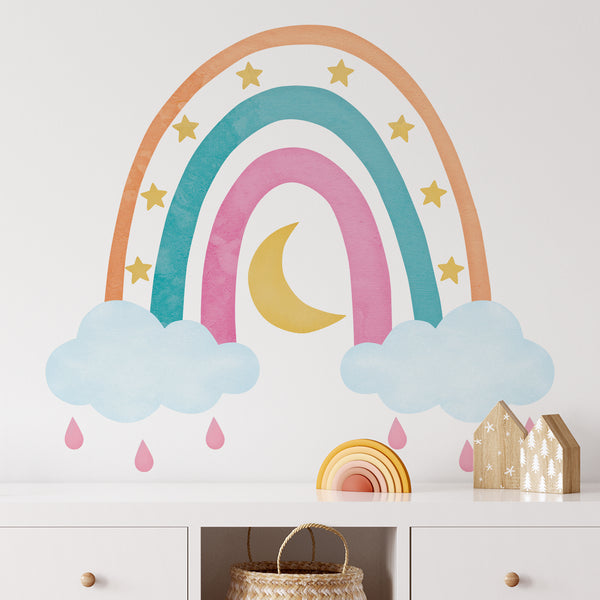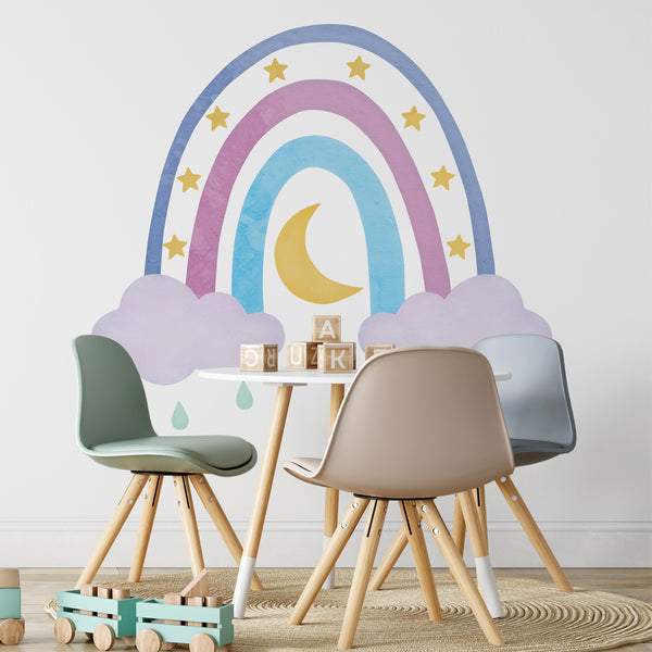 The Rainbow Moon Decal is composed of a rainbow and clouds without background and can be placed over a coloured wall, once installed you will have a beautiful and seamless rainbow on your wall.