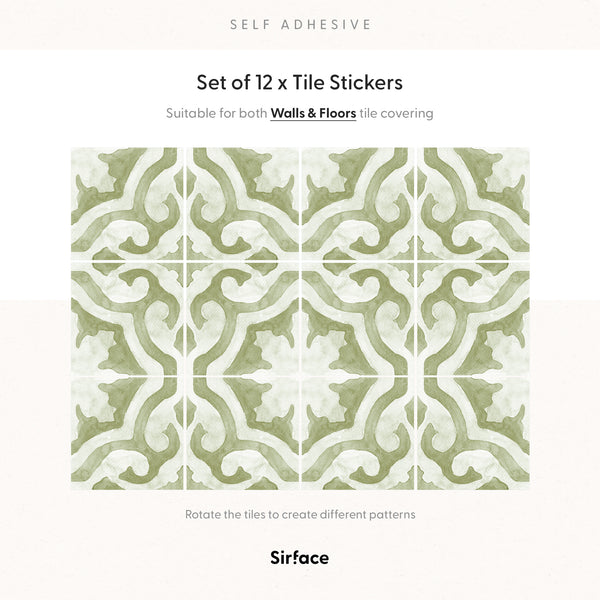 Casablanca Sage Tile Decals Set - PACK OF 12