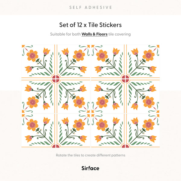 6 x 6 inches • 15.2 x 15.2 cm each tile sticker