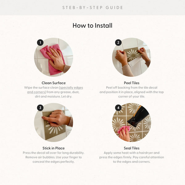 7 x 7 inches • 17.8 x 17.8 cm each tile sticker