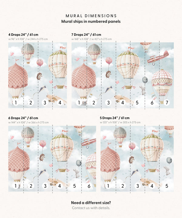 Our Murals ship in Panels. Each panel is 24” | 61 cm wide. Let us know if you require a size that is not listed. More details on how to measure and order are below.