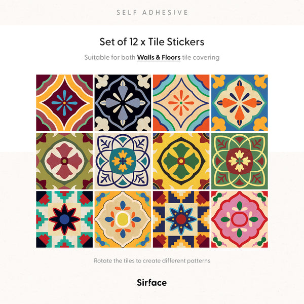 6 x 6 inches • 15.2 x 15.2 cm each tile sticker
