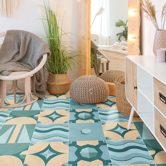 Geometric Turquoise Adhesive Vinyl Floor Panel